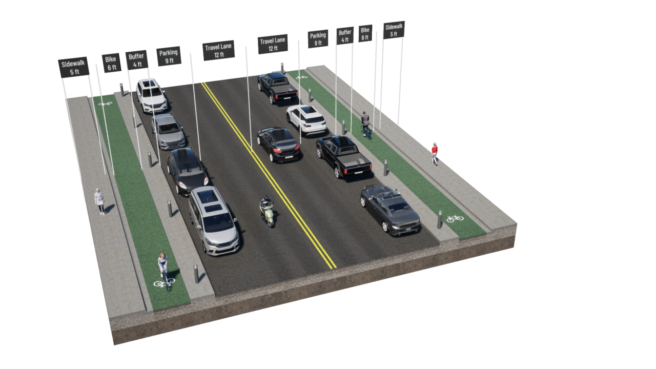 This project concept will utilize the opportunity of a full-scale reconstruction of 6th Street to provide a parking protected bike lane from 4th Street to Virginia Street. This project will utilize existing excess capacity and transition from four lanes to two lanes with turn pockets at key intersections.